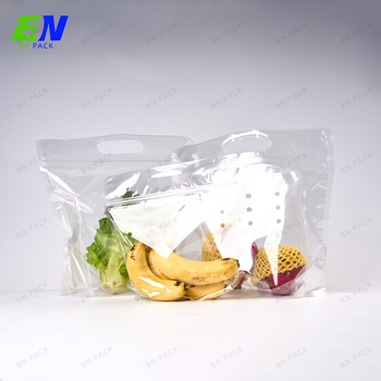 Sacs d'emballage pour fruits et légumes Sacs en plastique poly écologique transparent avec trous d'aération Sacs à fermeture éclair personnalisés avec impression de logo 1-3kg